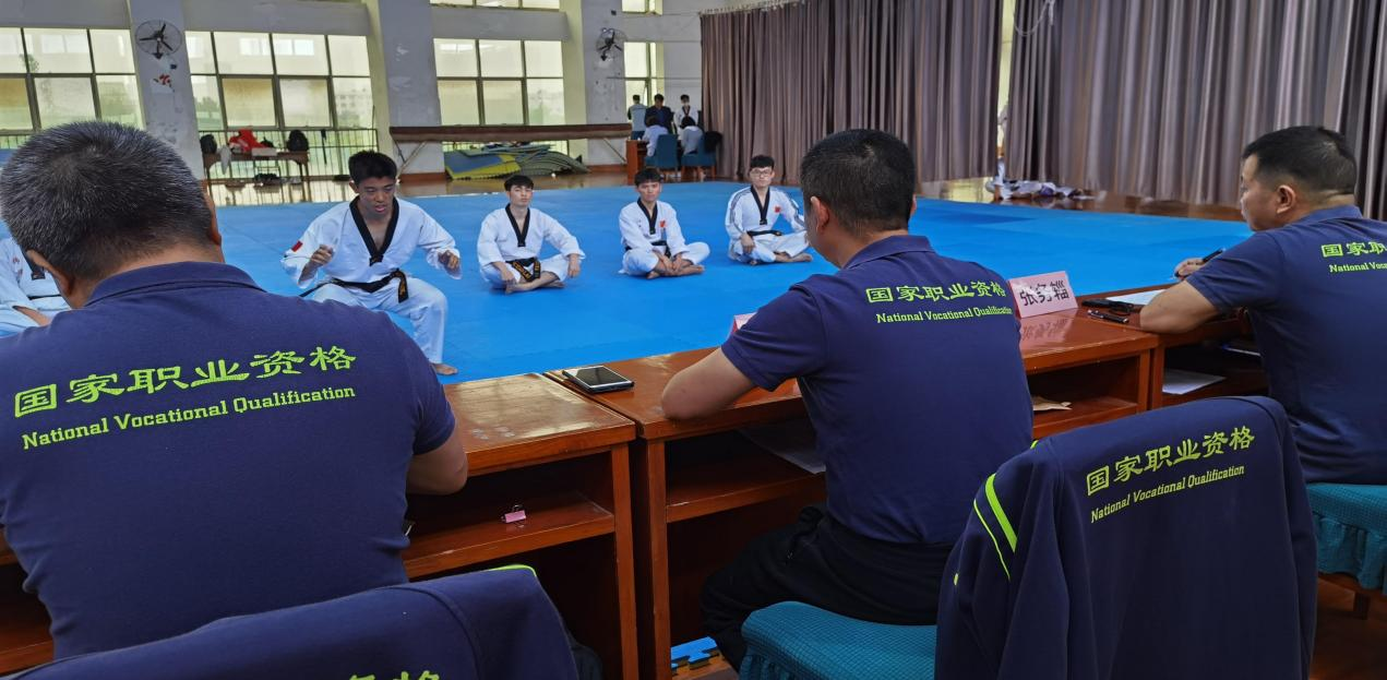 鑒定考核分為理論考試和實(shí)操考核兩部分,考試過(guò)程中考評(píng)員及考務(wù)工作人員組織嚴(yán)密,分工明確。理論考試紀(jì)律嚴(yán)明,實(shí)操考核嚴(yán)謹(jǐn)有序??荚噰?yán)格執(zhí)行國(guó)家體育總局職業(yè)技能鑒定指導(dǎo)中心《關(guān)于跆拳道項(xiàng)目國(guó)家職業(yè)資格鑒定的考試程序和標(biāo)準(zhǔn)》、《江西省體育局新冠肺炎疫情期間體育行業(yè)職業(yè)技能培訓(xùn)鑒定工作預(yù)案》的要求,落實(shí)疫情防控管理措施,確??荚囋诎踩行虻沫h(huán)境中進(jìn)行。本次鑒定考評(píng)合格者將由國(guó)家體育總局、國(guó)家人力資源和社會(huì)保障部統(tǒng)一印制頒發(fā)社會(huì)體育指導(dǎo)員跆拳道《職業(yè)資格證書(shū)》。